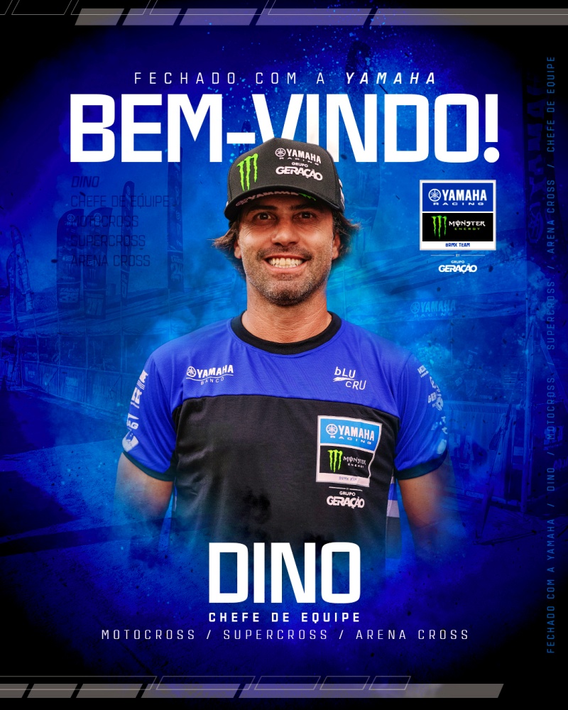 Nascido em Minas Gerais, Dino tem 38 anos dedicados ao motociclismo. Inclusive já foi integrante da Yamaha Monster Energy Geração como preparador de pilotos de 2018 até 2023. Agora retorna para dar sequência ao trabalho e acompanhar os pilotos tanto nos treinamentos quanto nas corridas.