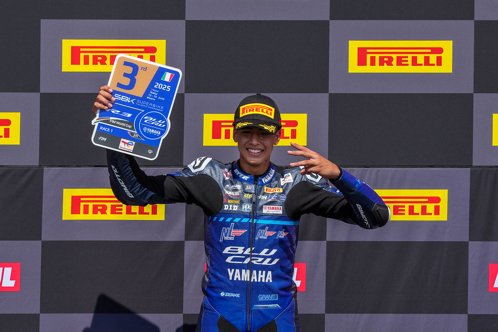 O piloto peruano-brasileiro Aymon Bocanegra acelerou forte na segunda etapa do Mundial Yamaha R3 BLU CRU em Misano, na Itália, e conquistou um lugar no pódio. O jovem foi o terceiro mais rápido na Corrida 1 da etapa e, além do troféu, conquistou pontos importantes.