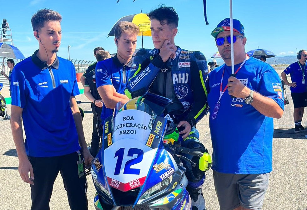 “Durante a Superpole eu tive um tombo e ali no momento não parecia ser muita coisa. Fui para o centro médico, fiz um raio-x e, infelizmente, eu quebrei o ombro, a cabeça do úmero. Por sorte não saiu do lugar, então não vai ser nada mais sério, que precisa de cirurgia, mas infelizmente eu estava no ritmo desse fim de semana, de ir para Portimão, e agora é voltar para casa e me cuidar, me tratar, e talvez em um mês já possa estar melhor. Agora é preparar para o ano que vem”, lamentou Enzo.
