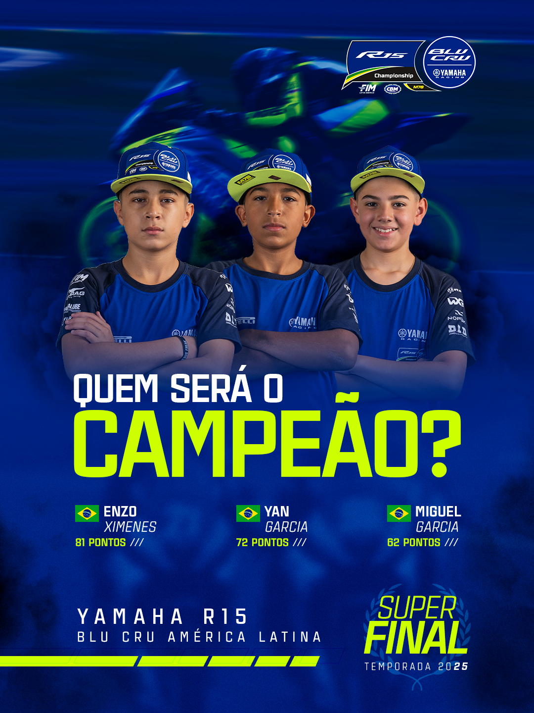 Partiu R3! Enzo Ximenes é o campeão do Yamaha R15 BLU CRU América Latina