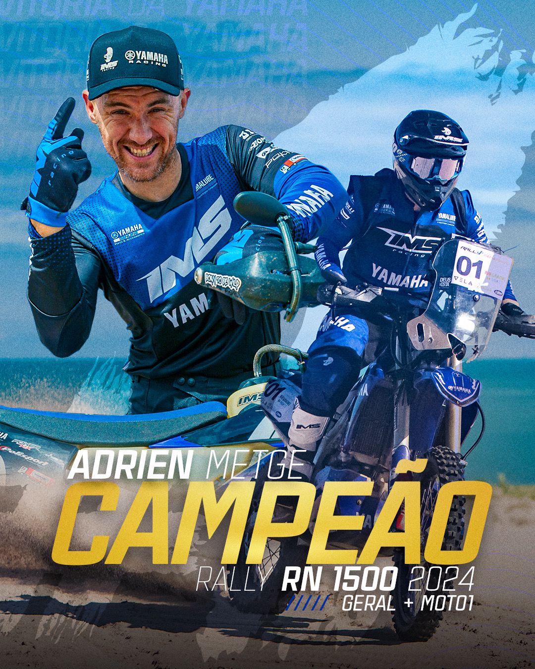 Quatro vezes Yamaha! Adrien Metge é o grande campeão da 26ª edição do Rally RN 1500. O piloto conquistou neste sábado (20/4) o tetracampeonato de um dos mais tradicionais e icônicos rallys do Brasil. A prova foi disputada entre os dias 16 e 20 de abril, entre São Miguel do Gostoso, no Rio Grande do Norte, e Patos na Paraíba.