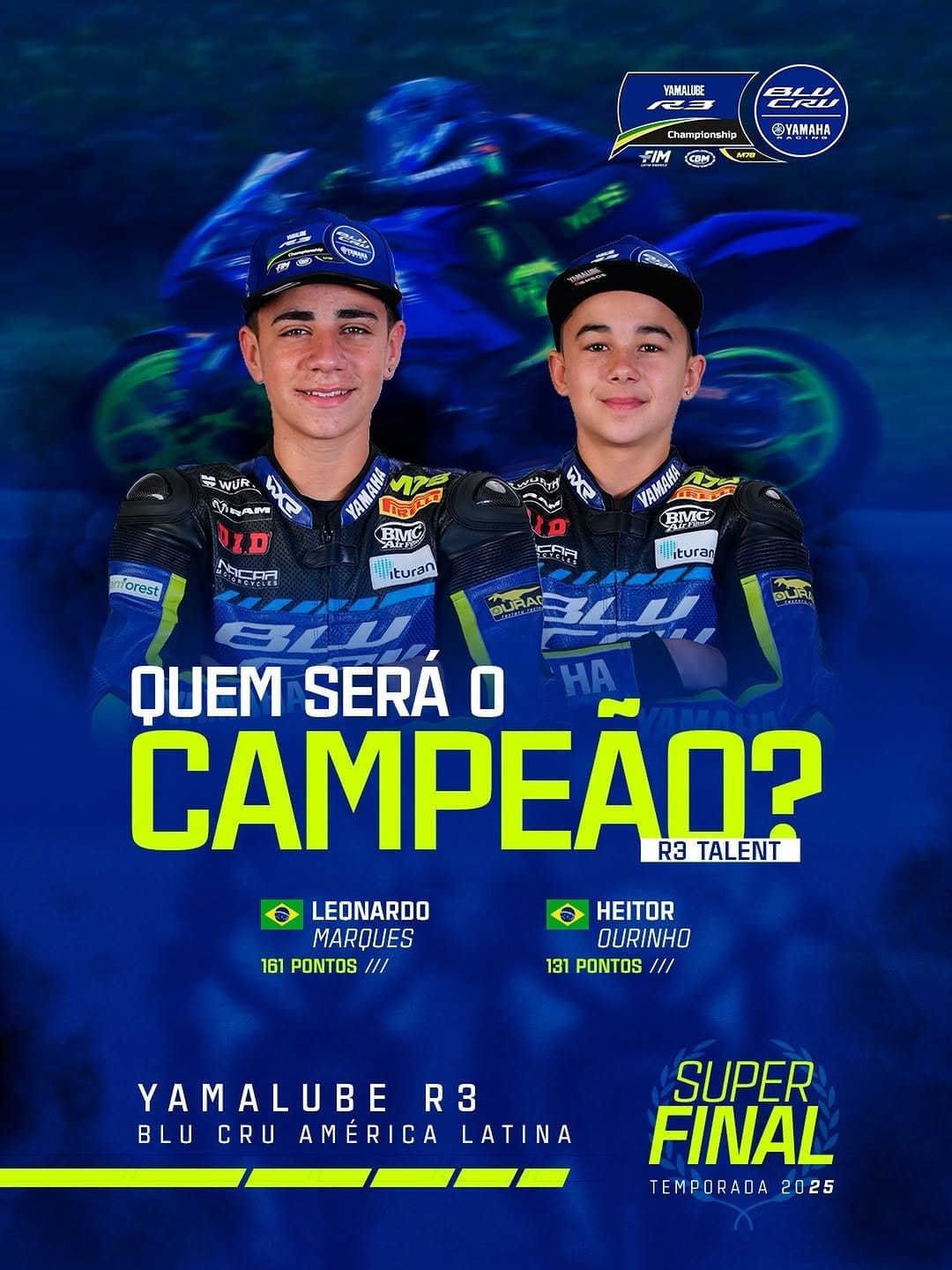 Quem será o campeão? Esta é a pergunta que toma conta da cabeça dos pilotos do Yamalube R3 BLU CRU América Latina à espera da Grande Final da temporada 2025. A disputa pelo título acontece neste fim de semana, nos dias 29 e 30 de novembro, no Autódromo Zilmar Beaux em Cascavel, no Paraná. As duas categorias da maior competição monomarca da América Latina seguem indefinidas, com muitos pilotos com chances de erguer o troféu, o que vai fazer com que a disputa pelos últimos 50 pontos do ano seja ainda mais intensa.