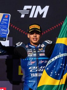 Com apenas 13 anos de idade, o vice-campeão do Yamalube R3 BLU CRU América Latina 2025 também vai encarar sua primeira temporada internacional acelerando na pista do Mundial Yamaha R3 BLU CRU em 2026.