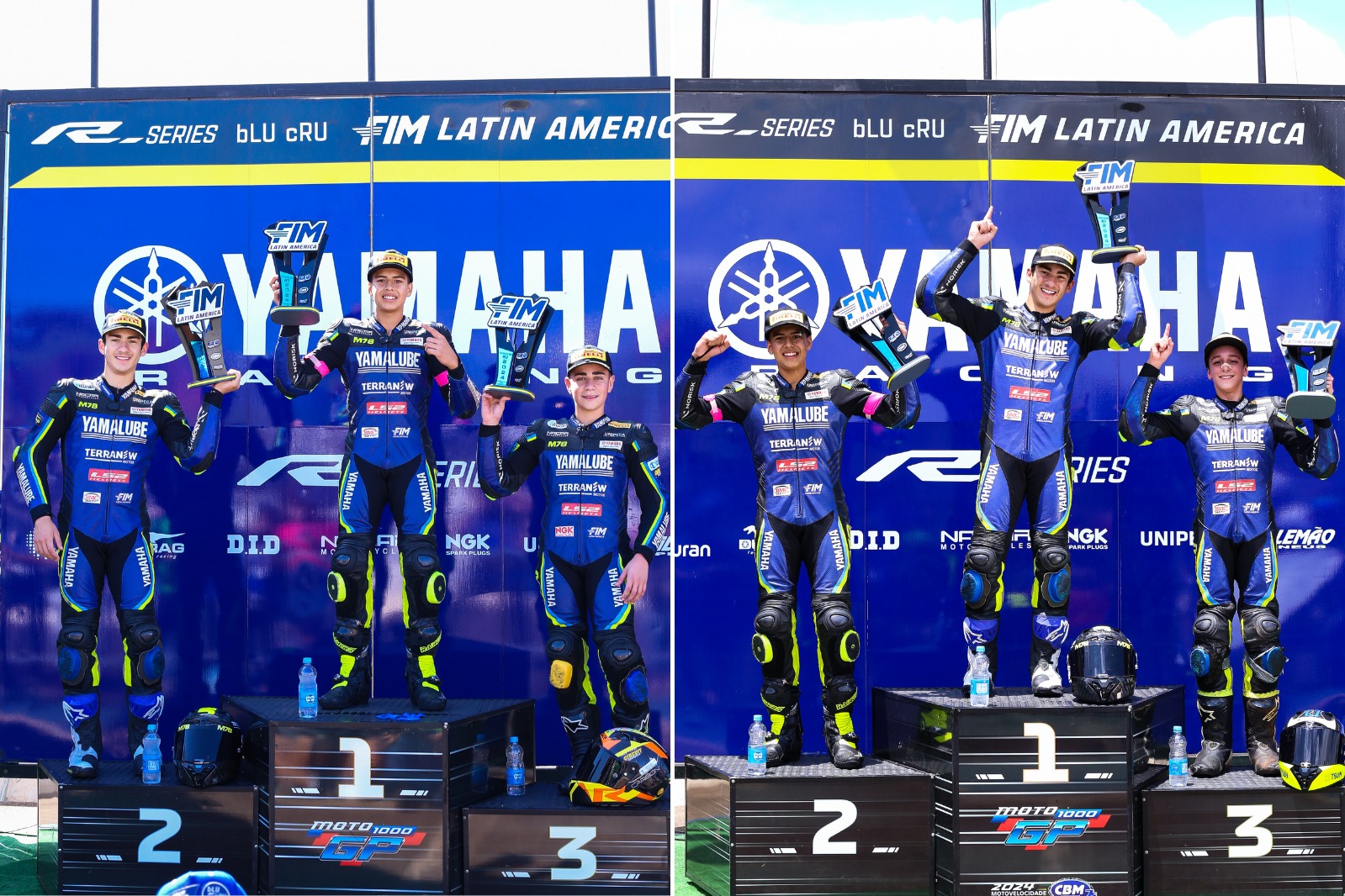 A Corrida 1 da categoria que contempla os pilotos de 12 a 22 anos foi um show de habilidade e talento. A prova foi vencida pelo peruano Aymon Bocanegra, atual líder da competição e quem vem fazendo bonito na temporada com participações na Yamaha R3 SuperFinale 2024 e no Master Camp de Valentino Rossi. Completaram o pódio os brasileiros Mario Salles e Leonardo Marques.