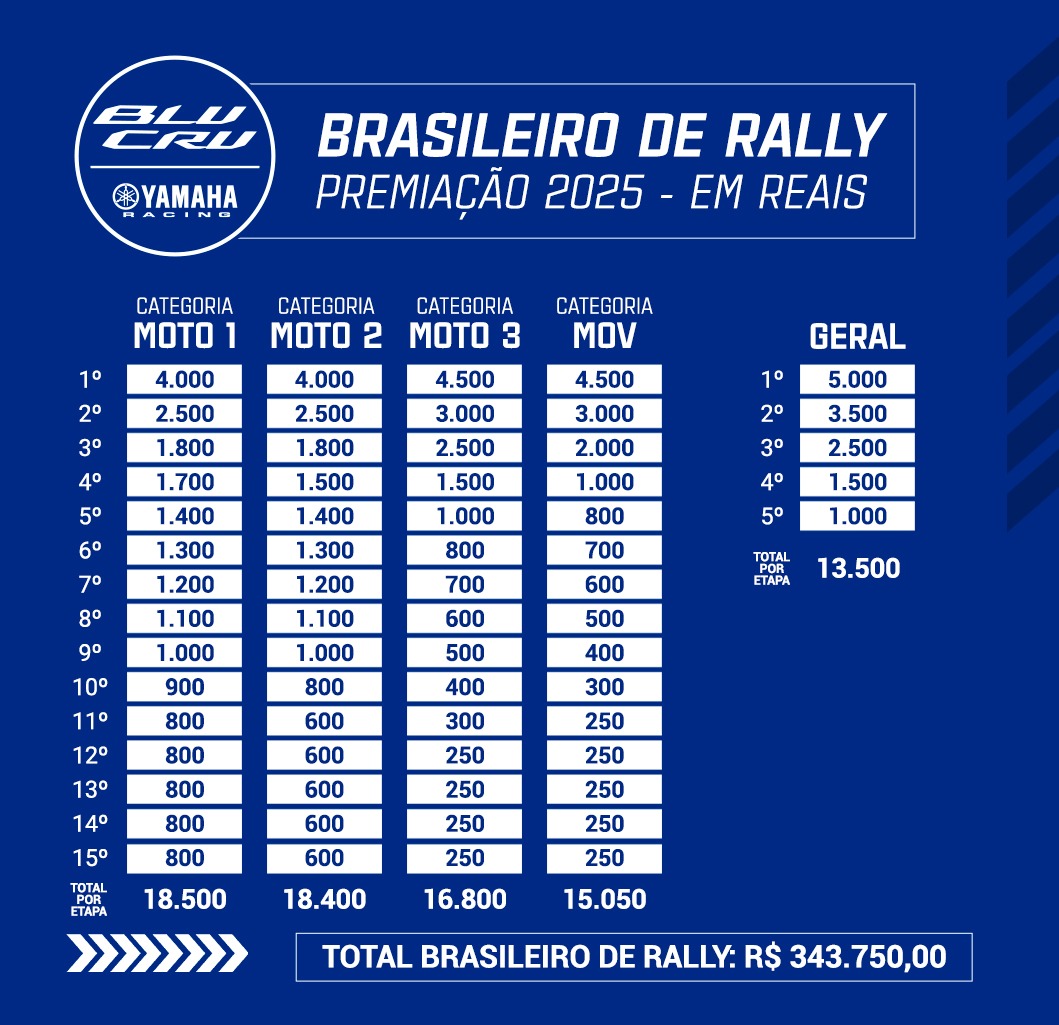 O Programa BLU CRU da Yamaha Racing Brasil completa 7 anos em 2025 e reforça ainda mais seu compromisso com o incentivo ao motorsport no país, abrangendo Motovelocidade, Rally e Motocross. Este ano, o Programa atinge um marco histórico ao disponibilizar R$ 2.314.900,00 em premiações, além de diversos benefícios exclusivos para competidores independentes que escolhem competir com motocicletas Yamaha.