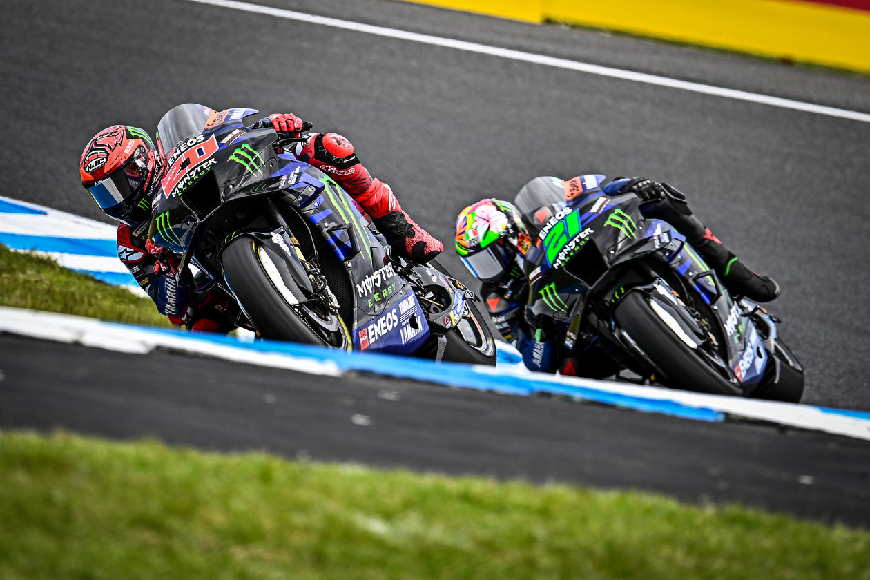O Grande Prêmio da Austrália de MotoGP, na 16ª etapa da competição, foi realizado no sábado (21) devido às previsões de mau tempo para domingo (22), e foi um desafio para Fabio Quartararo e Franco Morbidelli. A dupla da Monster Energy Yamaha MotoGP terminou a prova de 27 voltas em 14º e 17º lugares, respectivamente. Ainda por conta da má condição climática, a Corrida Sprint, que já havia sido transferida para domingo, acabou cancelada.