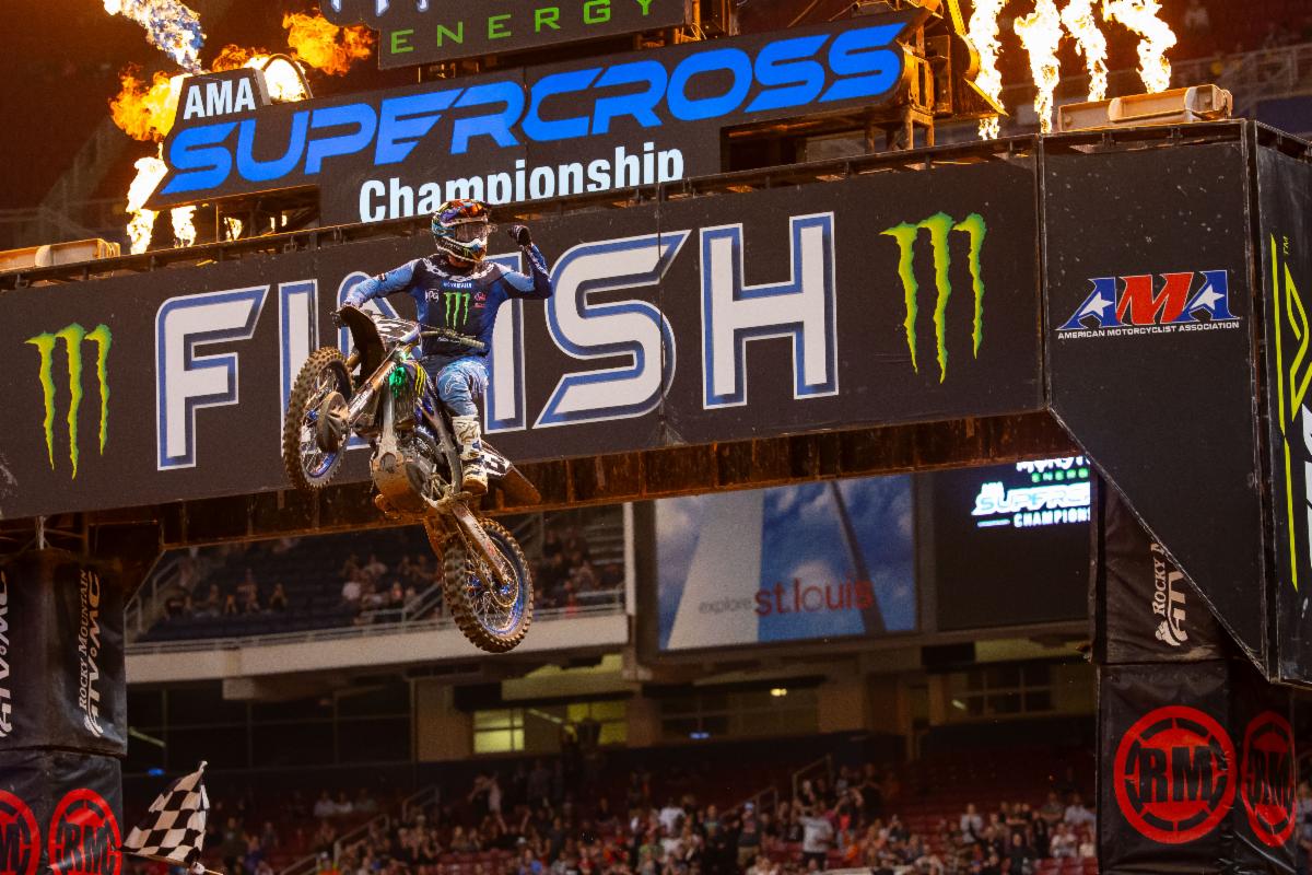 A 12ª rodada do AMA Supercross foi realizada neste sábado (30/3), no The Dome, no America’s Center, em St. Louis, Missouri. Em formato Triplice Crown, com três baterias para definir o vencedor, o piloto Eli Tomac, da Yamaha, fez três excelentes corridas e não deu chances aos adversários na categoria principal, a 450SX, para garantir a sua primeira vitória na temporada – e também a primeira desde que retornou da lesão no Tendão de Aquiles no fim da temporada de 2023.