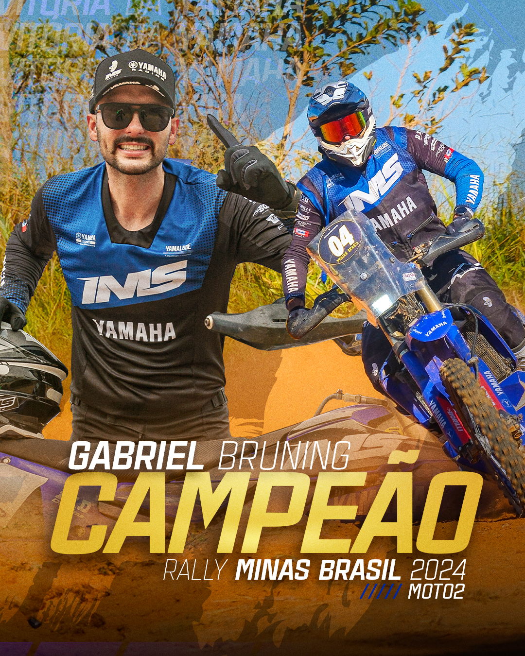 “Campeão do Rally Minas Brasil na Categoria Moto2 e quarto colocado na Classificação Geral. Foi um Rally bem difícil pra mim, com muitos desafios. Hoje acabei sofrendo uma queda forte, mas o importante é que consegui terminar. Andei os últimos 75 km com uma só parte do guidão, mas desistir não é uma opção. A gente vai até o final para brigar e agora o resultado está aí, campeão!”