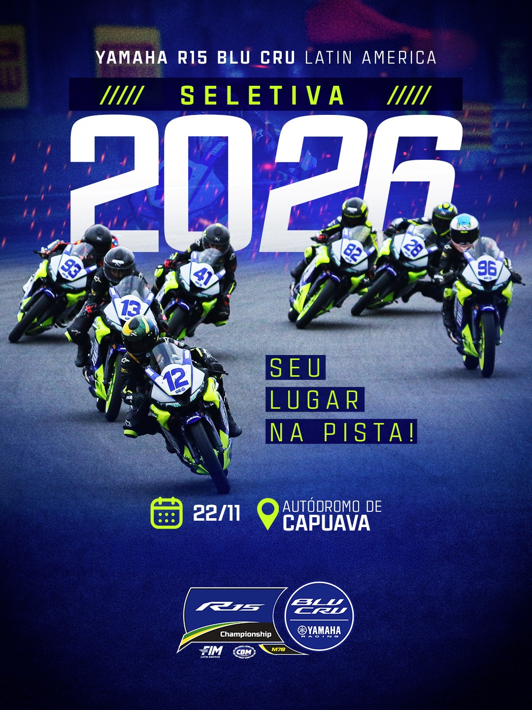 A seletiva para a próxima temporada acontece nos dias 21 e 22 de novembro no Autódromo Capuava, em Indaiatuba (SP) e os pilotos interessados em participar podem se inscrever preenchendo o formulário neste link: INSCRIÇÃO SELETIVA YAMAHA R15 BLU CRU AMÉRICA LATINA 2026.